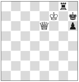 1.♕e7+ ♔b8 2.♕d8+ ♔a7 3.♕c8 ♖b7! 4.♕c5+ ♔b8 5.♕e5+ ♔a7 6.♕d4+ ♔a8 7.♔c5 ♔a7 8.♔c6+ ♔a8
