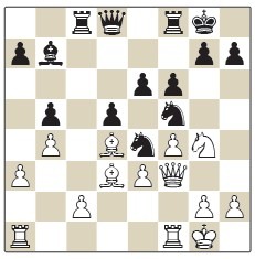11...♘e7 12.♕f3 b5 13.dxc5 ♗xc5 14.b4 ♗b6 15.♘b3 ♘e4 16.♘d4 ♘f5 17.♖ad1 ♕e7 18.♔h1 a6 19.♕h3 ♘fd6 20.f5 f6