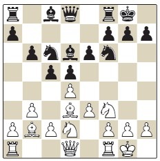 He considers 8...♘b4 the strongest move order when after 9.♗e2 b6 10.a3 ♘c6 11.♗d3 ♗b7 we are heading back to Conquest-Royal but now Pavlovic recommends 12.♕e2 ♖c8 13.♖ad1