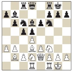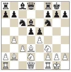 1.b3 ♘f6 2.♗b2 c5 3.e3 d5 4.♘f3 e6 5.d4 ♘c6 6.♘bd2 ♗d6 7.♗d3 0-0 8.0-0 b6 9.a3 ♗b7 10.♘e5 ♖c8 11.f4