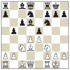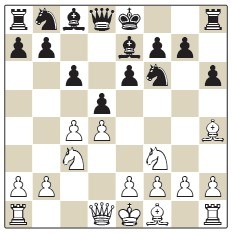 1.e4 c5 2.♘f3 e6 3.d4 cxd4 4.♘xd4 a6 5.♗e2 ♘f6 6.♘c3 ♕c7 7.0-0 d6 8.f4 h5 9.h3 ♘bd7 10.a4 b6 11.f5 e5 12.♘e6