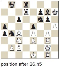 21.♘g6 hxg6 22.fxg6 ♘g5 23.♕h5 ♖fd8 24.♘f3 ♘gf7 25.gxf7+ ♘xf7 26.♕h7+ ♔f8 27.♘h4 ♔e8 28.♘g6 1-0.